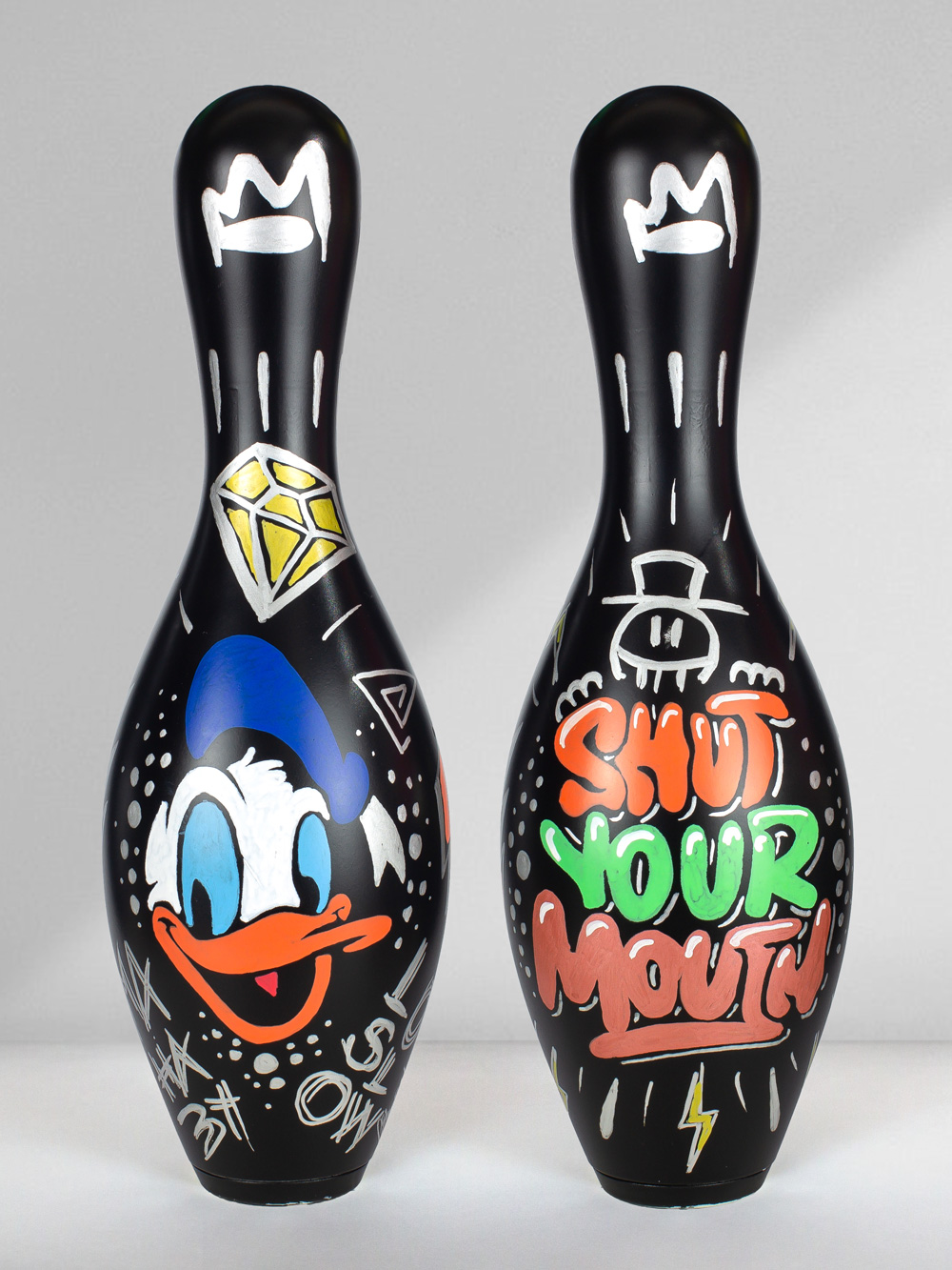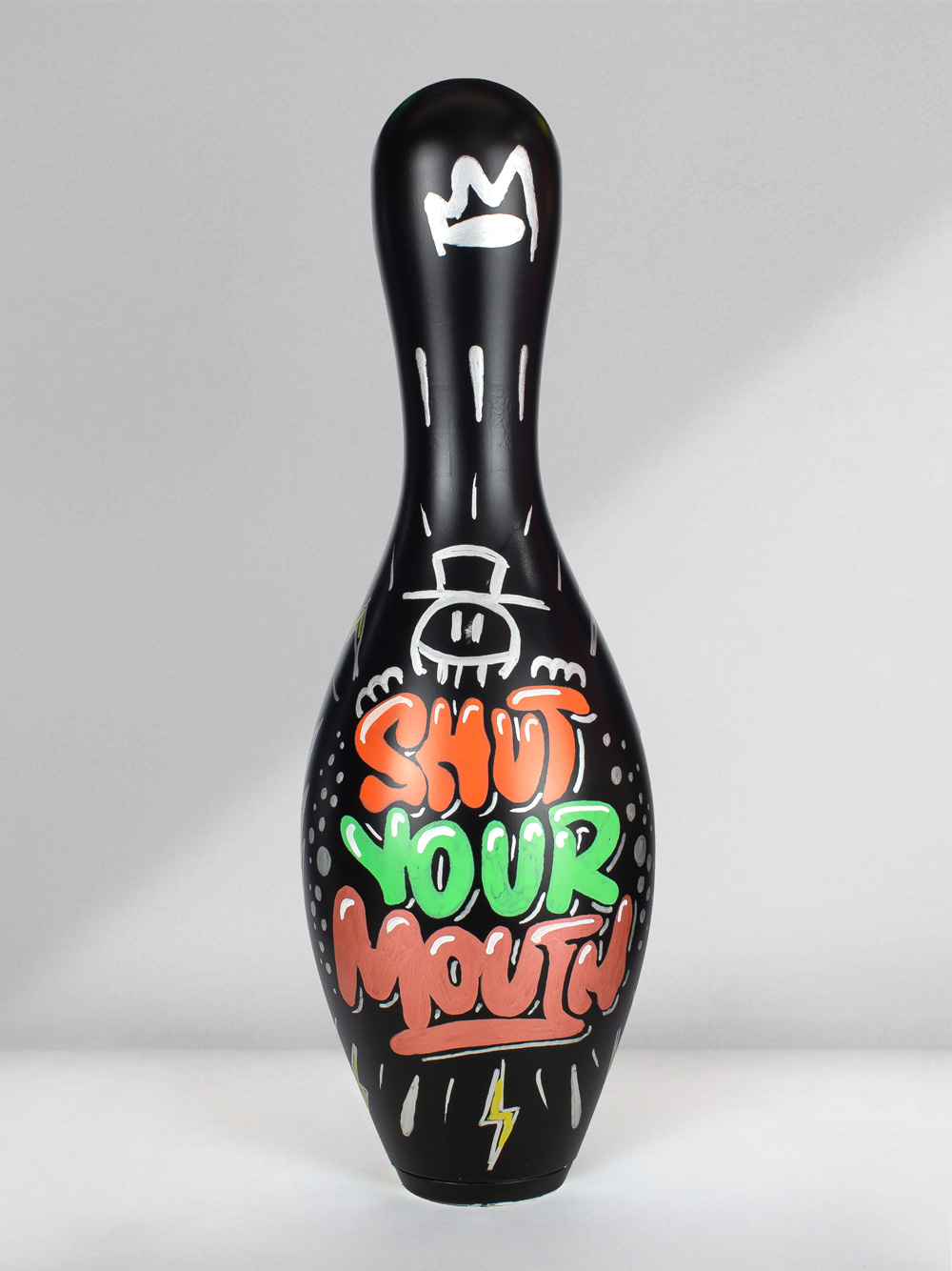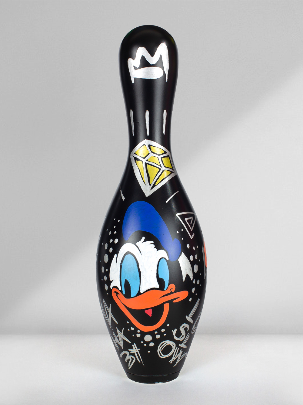 Technique: Mixed media on original bowling pin.