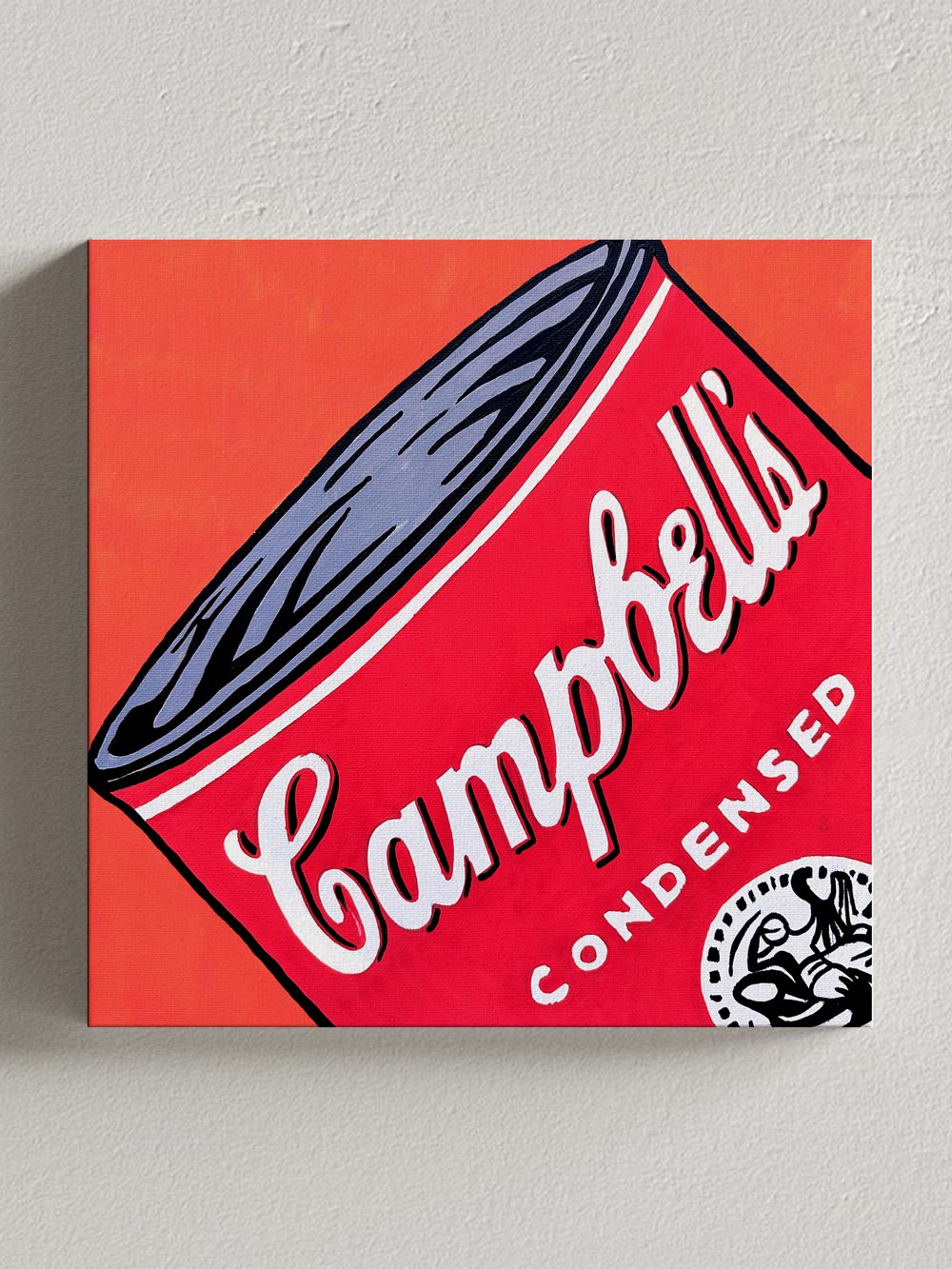 Campbell Soup Can acrylic paint on 3D cotton canvas pop art style.