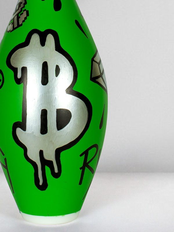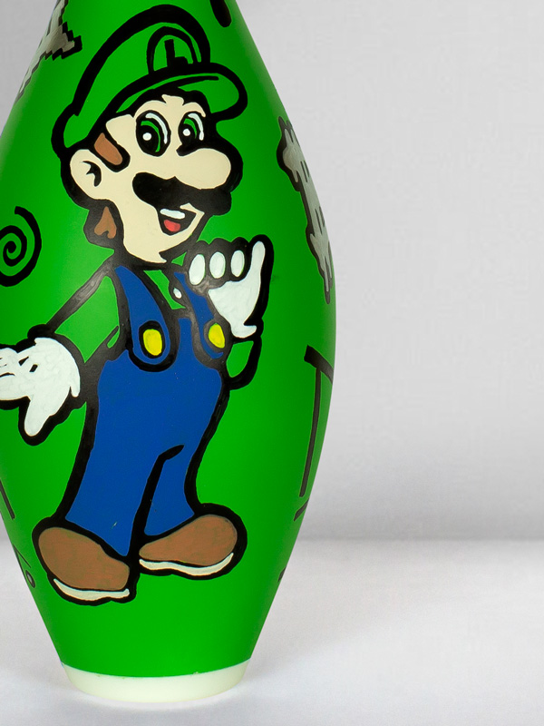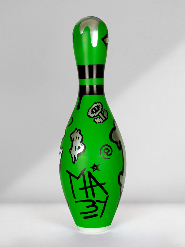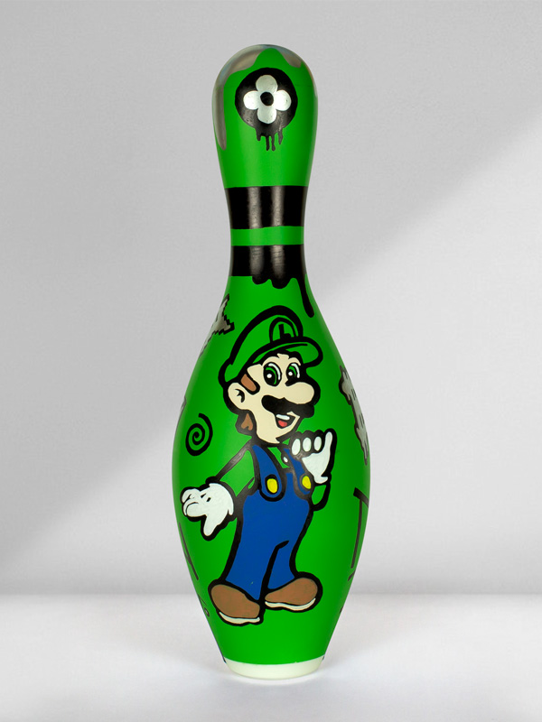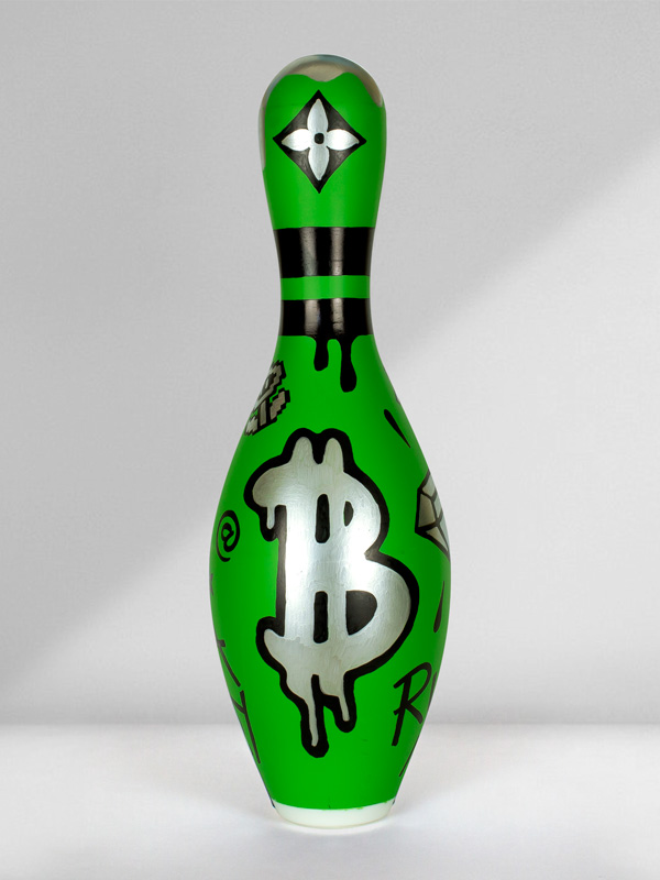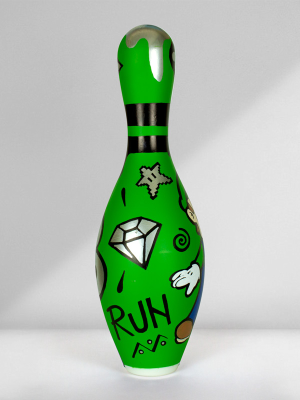 Technique: Mixed media on original bowling pin.