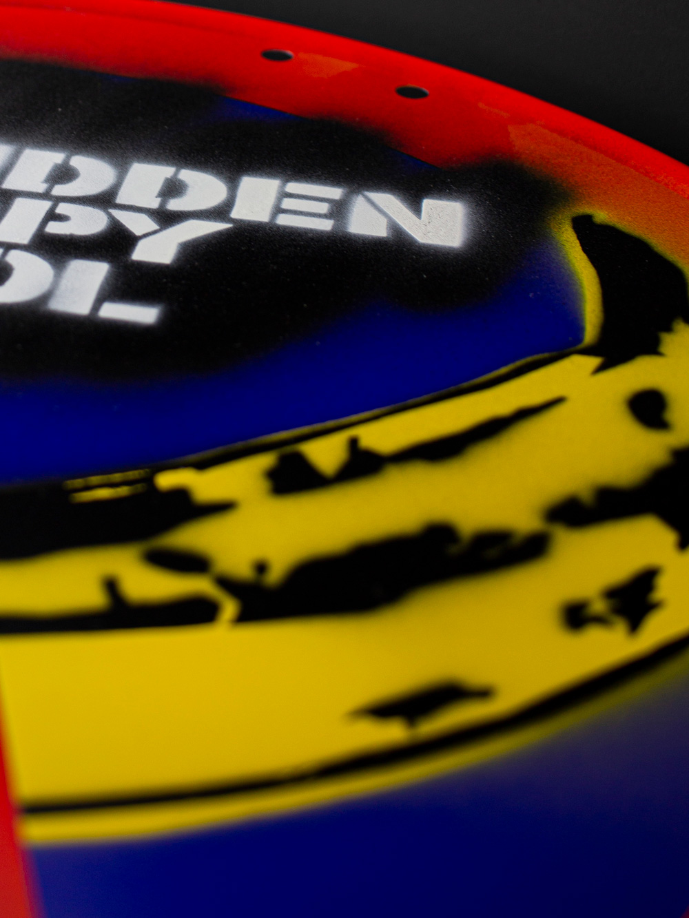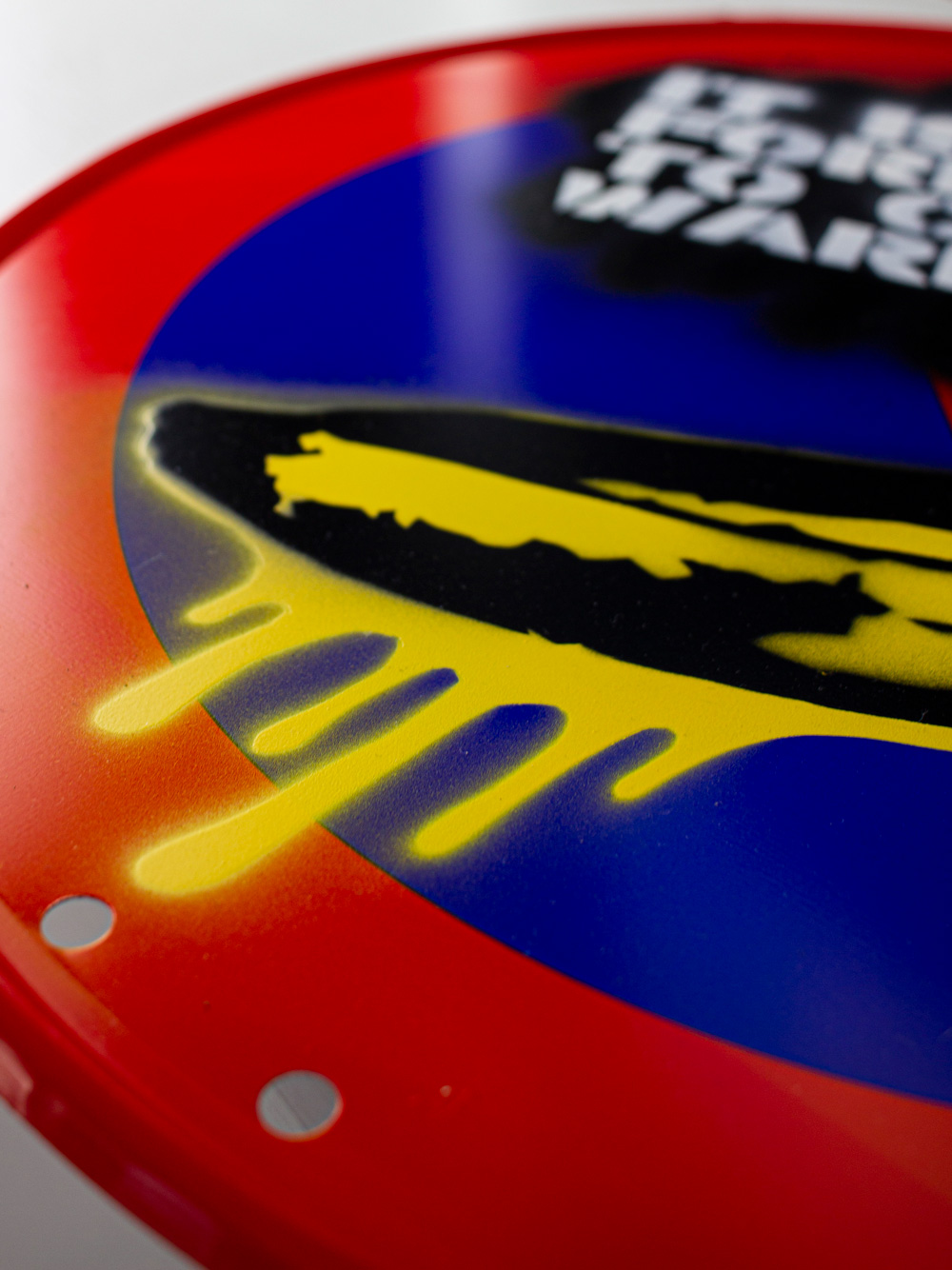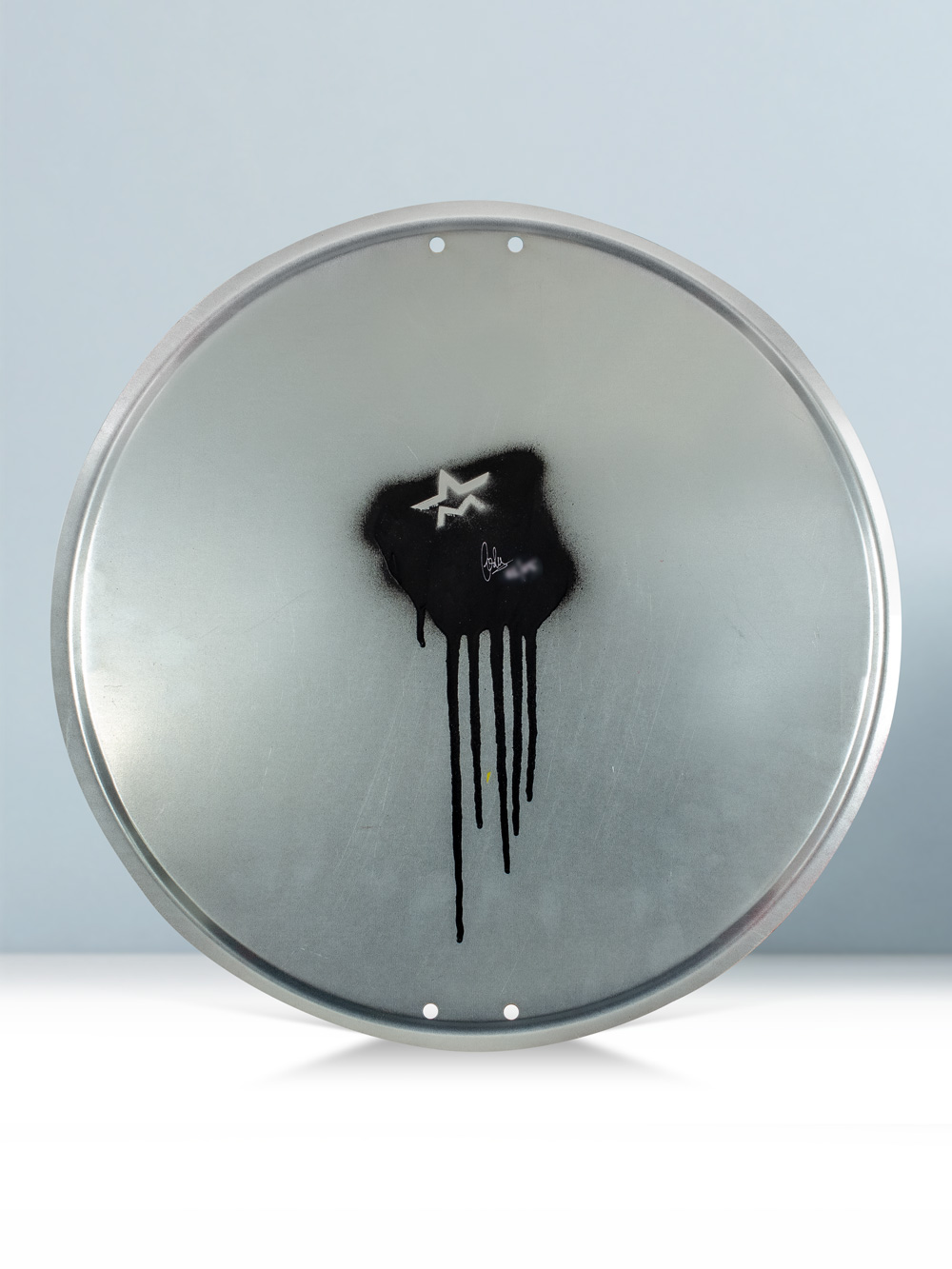 • Technique: Stencil and acrylic spray on metallic road sign