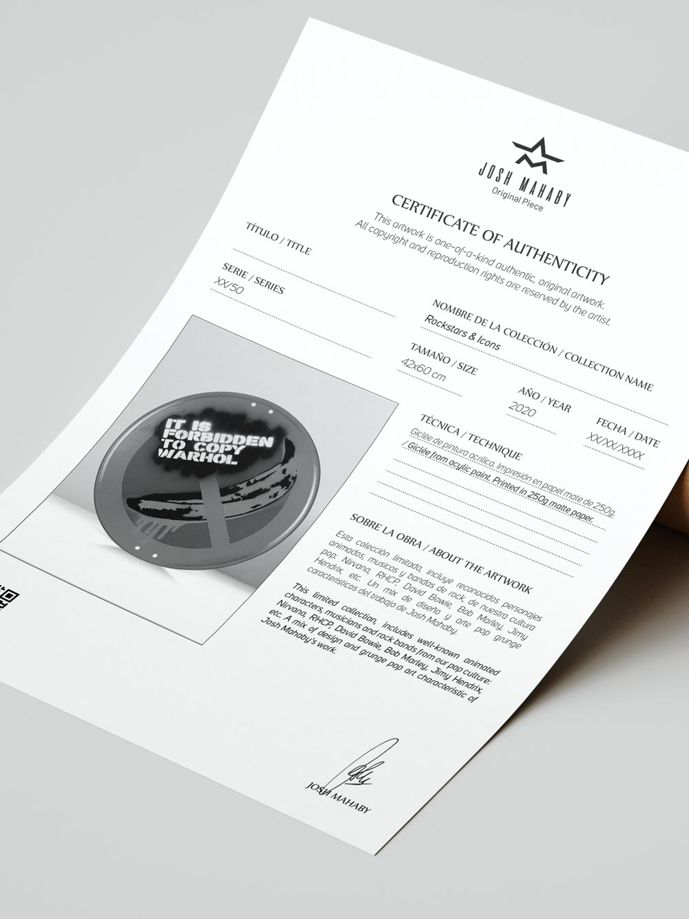 A bold Pop Art intervention on an authentic metallic road sign, blending irony and homage to Andy Warhol’s legacy. Each piece in this series is individually made to order, created after purchase, making every work unique and highly exclusive.