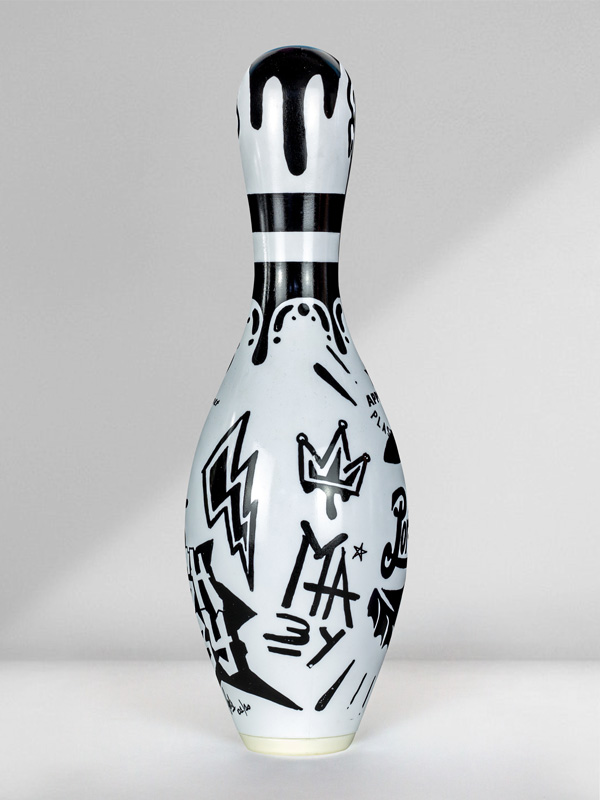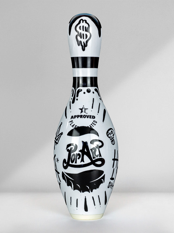 Technique: Mixed media on original bowling pin.