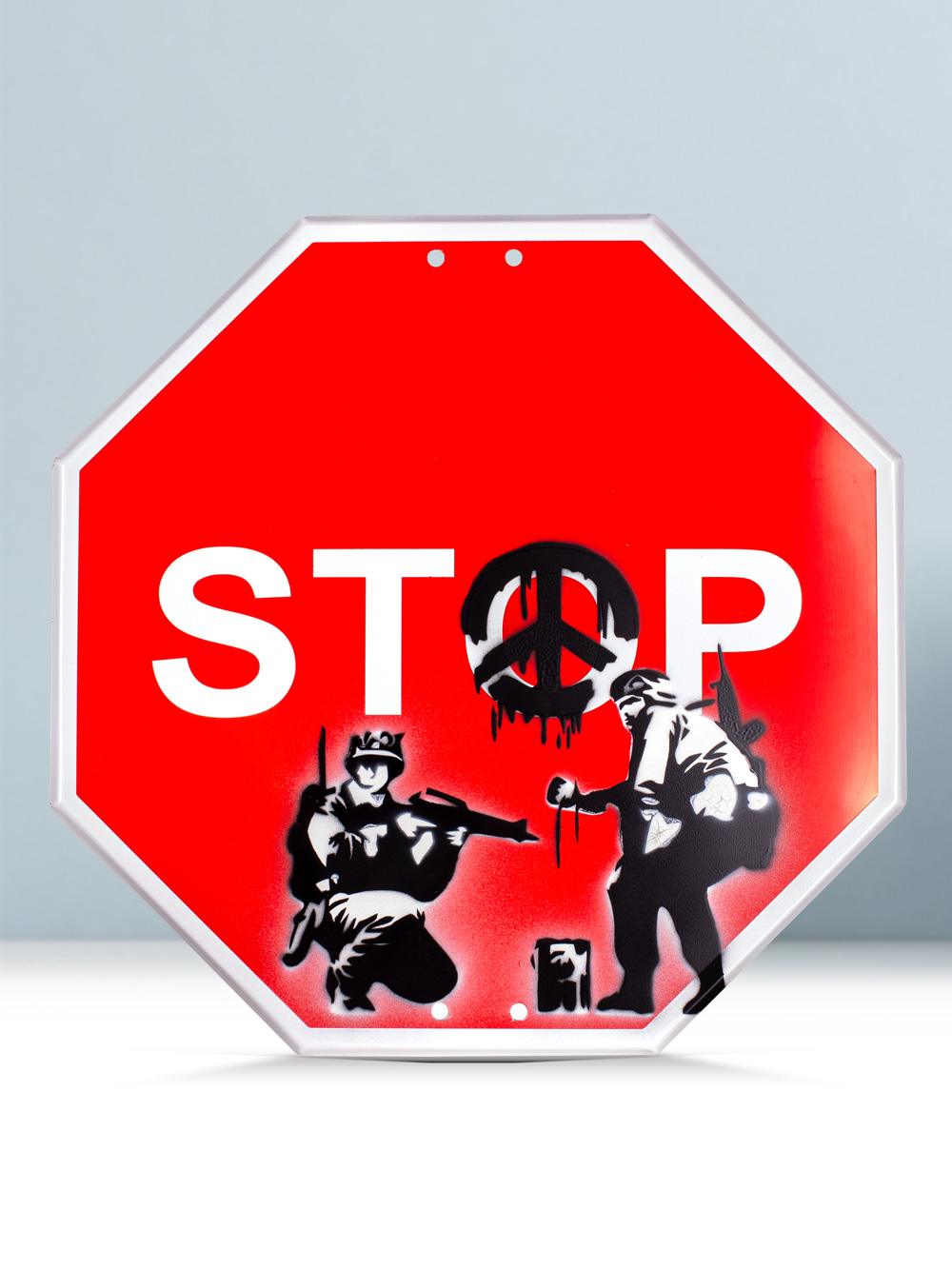 “Stop War Banksy CND Soldiers Tribute Road Sign” by Josh Mahaby