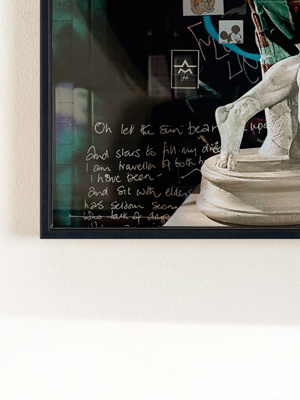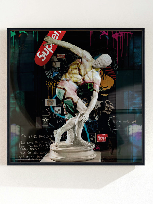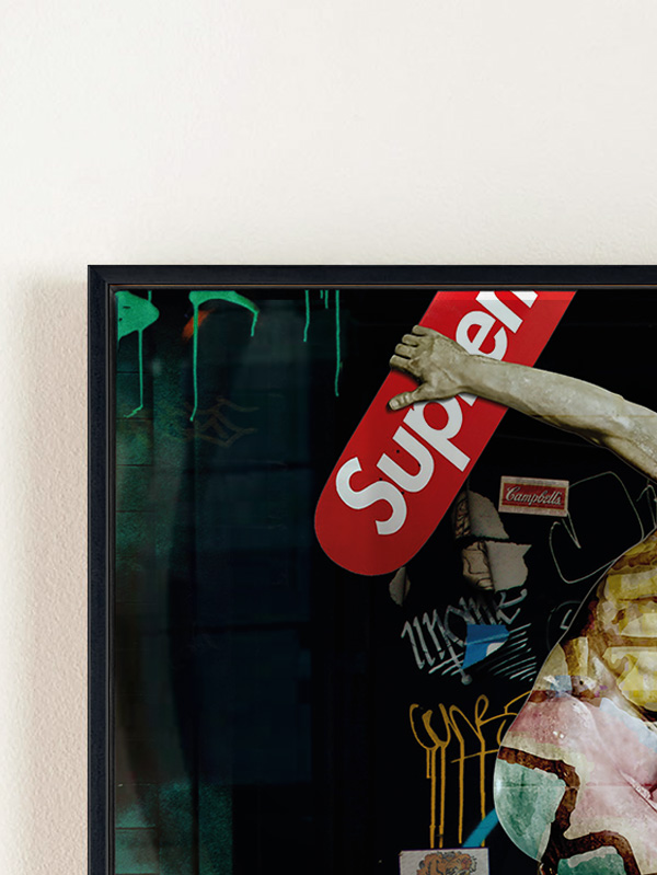 Technique: Digital Collage on PVC and floating frame, covered with Art Resin.