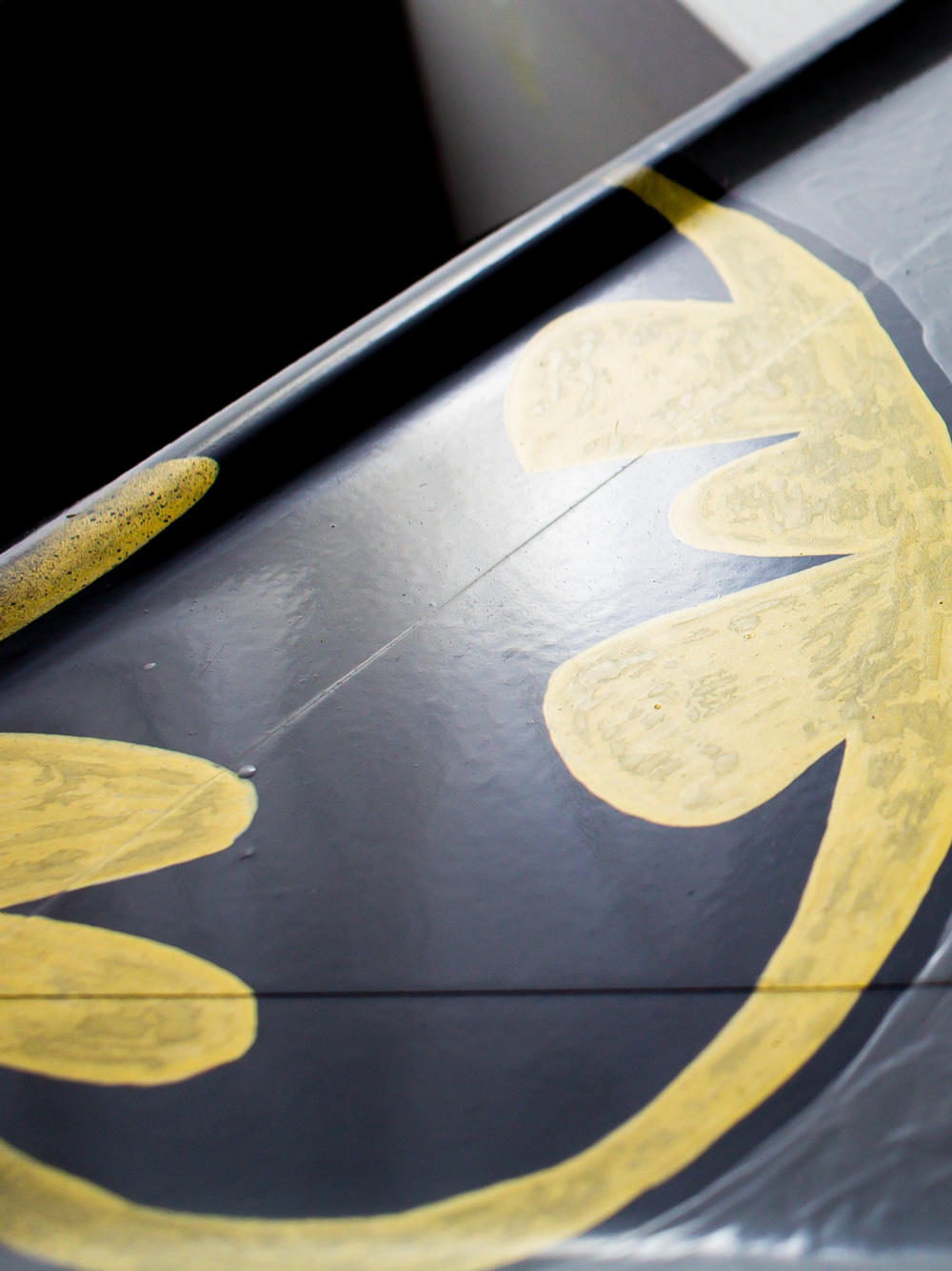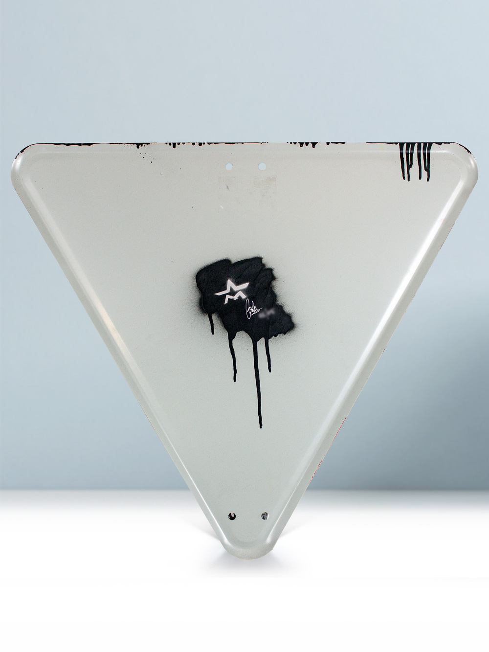 - Technique: Mixed media on metallic road sign