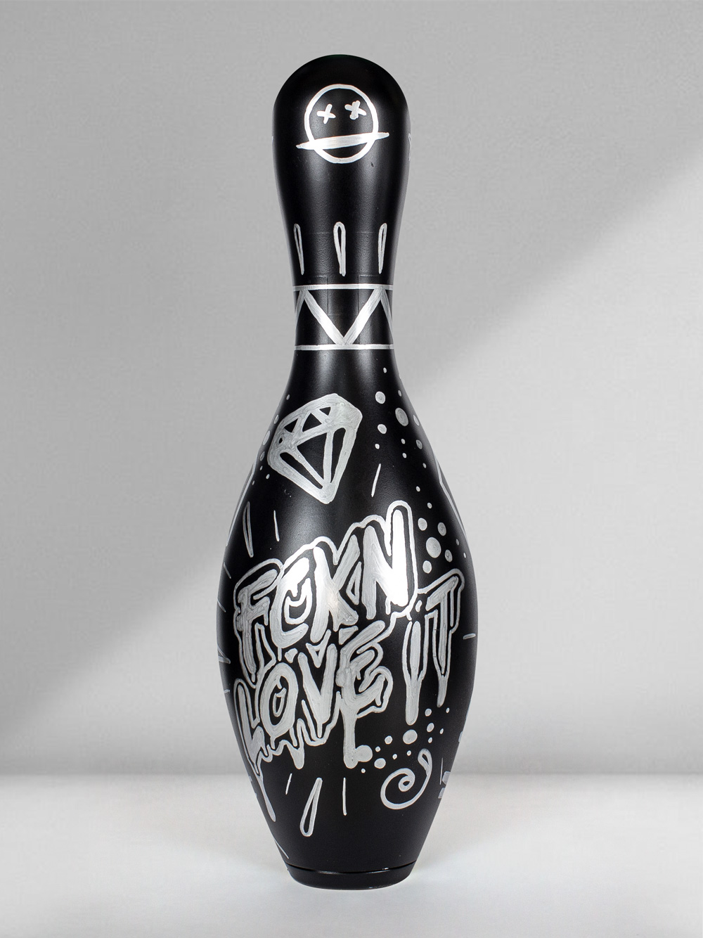 Technique: Mixed media on original bowling pin.