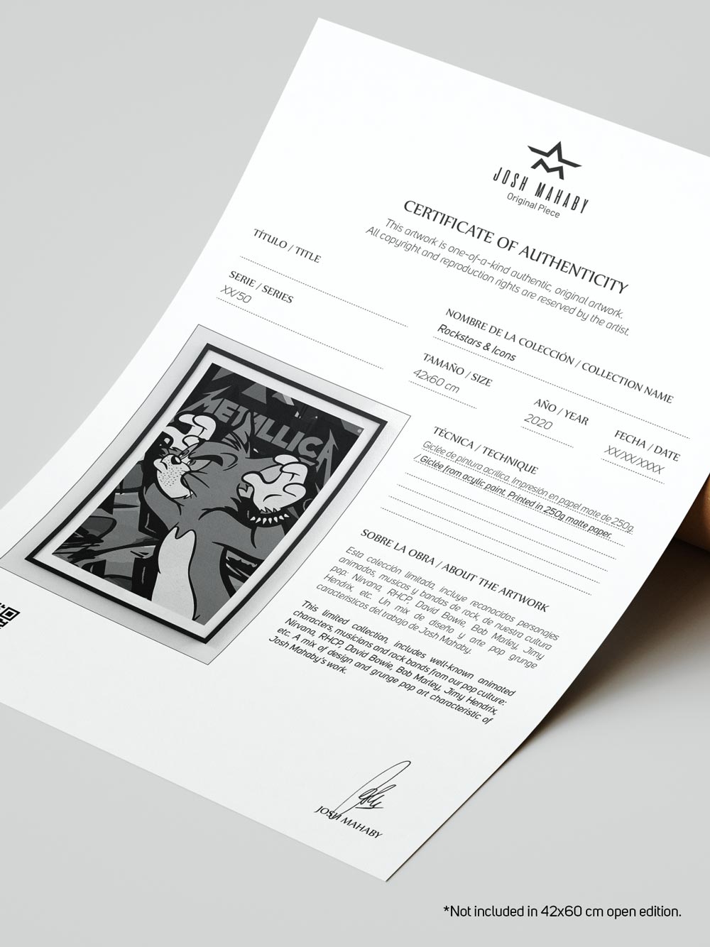 – Signed and numbered edition with certificate of authenticity: 50 (A2 = 42x60cm) and 50 (70x100cm)