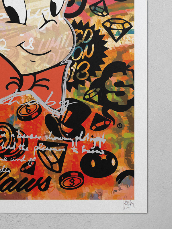 Josh Mahaby is a graphic designer, art director and illustrator born in 1982 in Argentina. His style combines many disciplines such as: illustration, painting, graffiti, digital and interventions in 3D objects. He currently has works exhibited all over the world, but mostly in Europe. His works are exhibited along with other great artists such as: Kaws, Alec Monopoly, Amanda toy, Angelo Accardi, Karl Lagasse, Romero Brito, Whatisname, etc. in Daniele Comelli Gallery – Genoa / Italy, Singulart – Paris / France, NL Galerie – Salzburg / Austria, and Kawai Gallery – Warsaw / Poland.